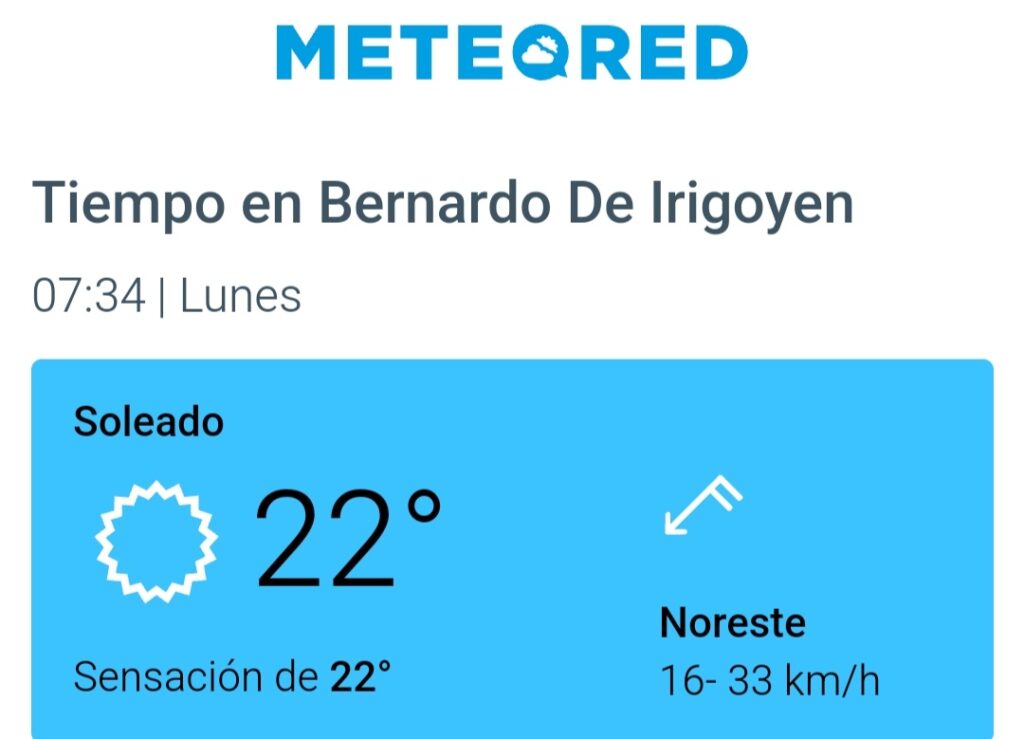 Cómo estará hoy el clima en nuestra localidad? 27 enero, 2025 Clima Deja un comentario 834 Vistas Artículos Relacionados Pronóstico del tiempo 19 febrero, 2025 Cómo estará el clima en nuestra localidad hoy Martes? 4 febrero, 2025 Tiempo en Bernardo De Irigoyen 13 enero, 2025 Post Views: 972 Compartir Facebook Twitter LinkedIn