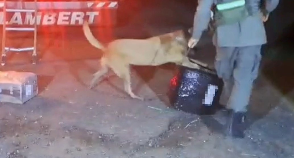 Finalmente, en Corrientes, los efectivos del Puesto de Control Fijo “Cuay Grande” del Escuadrón 57 “Santo Tomé” se encontraban efectuando actividades de control vial sobre la Ruta Nacional N° 14, cuando interceptaron otro transporte de encomiendas y llevaron a cabo el pasaje con el can detector de narcóticos “Hiena”.