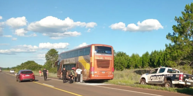 Un principio de incendio en un colectivo de media distancia generó pánico a la altura del kilómetro 798 de la Ruta Nacional 14. El vehículo, un interno N° 17 de la empresa «Sol del Norte», transportaba a 17 pasajeros desde San José hacia Oberá cuando el conductor, Jorge Leandro Spaciuk, detectó un problema en los frenos traseros.