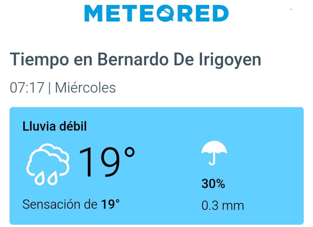 Pronóstico del tiempo 19 febrero, 2025 Clima Deja un comentario 500 Vistas Artículos Relacionados Cómo estará el clima en nuestra localidad hoy Martes? 4 febrero, 2025 Cómo estará hoy el clima en nuestra localidad? 27 enero, 2025 Tiempo en Bernardo De Irigoyen 13 enero, 2025 Como estará el Clima este día miércoles en nuestra localidad meteored.com.ar Post Views: 560 Compartir Facebook Twitter LinkedIn