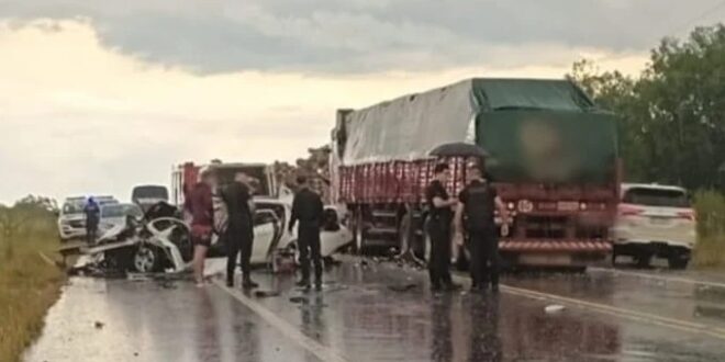 Un fatal accidente de tránsito tuvo lugar este miércoles a las 15.30 en el kilómetro 886 de la ruta nacional 14, en el municipio de Oberá. Un automóvil Peugeot 208 y un camión Volvo 420 con semirremolque colisionaron de manera frontal, dejando como saldo el fallecimiento instantáneo del conductor del rodado menor.